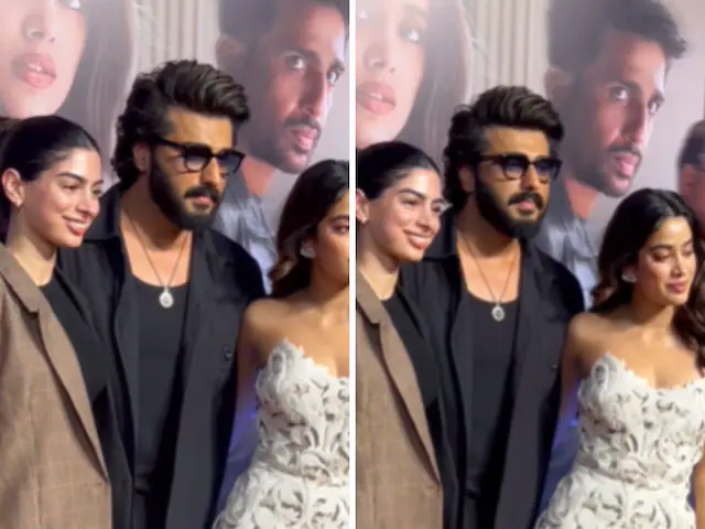 ముగ్గురు కపూర్ తోబుట్టువులు ఛాయాచిత్రకారులు కోసం పోజులివ్వగా, అర్జున్ కపూర్ జాన్వీని ప్రోత్సహించడం మరియు ఆమెను దృష్టిలో పెట్టుకోవడం కనిపించింది. అతను చెప్పాడు, “హమ్ లాగ్ పిక్చర్ దేఖ్నే ఆయే హై. జాన్వీ కి ఫోటో లో (మేము సినిమా చూడటానికి వచ్చాము, జాన్వీ ఫోటో తీయండి)” ఈవెంట్ కోసం, ఖుషీ మరియు అర్జున్ నలుపు రంగులో కవలలుగా కనిపించారు. అర్జున్ నలుపు చొక్కా మరియు ప్యాంటును ఎంచుకుంటే, ఖుషీ నల్లటి ప్యాంట్‌సూట్ ధరించి, జుట్టును బన్‌లో కట్టుకుంది. స్క్రీనింగ్‌కి జాన్వీ కూడా స్టైల్‌గా వచ్చింది. సున్నితమైన లేస్ మోటిఫ్‌లతో అలంకరించబడిన తెల్లటి స్ట్రాప్‌లెస్ చిన్న దుస్తులలో జాన్వీ అందంగా కనిపించింది. దుస్తులు ఆమె శరీరాన్ని అద్భుతంగా కౌగిలించుకున్నాయి మరియు ఆమె క్లాసిక్ తెల్లని హీల్స్ మరియు ఆభరణాలతో రూపాన్ని పూర్తి చేసింది. ఆమె జుట్టు సున్నితమైన తరంగాలతో తయారు చేయబడింది, ఇది ఆమె ముఖాన్ని బాగా ఫ్రేమ్ చేసింది.