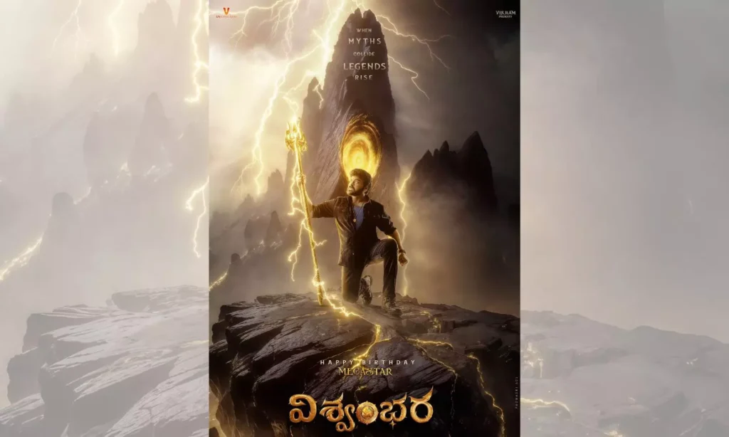అతను కొత్త తరం దర్శకుడు వశిష్టతో కలిసి పాత్ బ్రేకింగ్ మూవీతో ముందుకు వస్తున్నాడు. ‘‘ఆగస్టు 22వ తేదీ మెగా అభిమానులకు పండగే కాబట్టి, ఎంతో ఆసక్తిగా ఎదురుచూస్తున్న ‘విశ్వంభర’ చిత్ర నిర్మాతలు అర్ధరాత్రి ప్రీ లుక్ పోస్టర్ను రివీల్ చేశారు, ఇప్పుడు ఫస్ట్ లుక్ పోస్టర్ను విడుదల చేశారు.