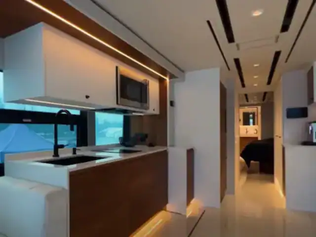క్లిప్ తర్వాత 10 టచ్-స్క్రీన్ గార్మిన్ ప్యాడ్‌లను చూపుతుంది, ఇది లైటింగ్ నుండి వినోదం వరకు ప్రతిదానిపై అతుకులు లేని నియంత్రణను అనుమతిస్తుంది. ప్రధాన గదిలో 65-అంగుళాల టీవీ ఉంది. ఇతర సౌకర్యాలలో సినిమా థియేటర్, రెండు కిచెన్‌లు, ఖరీదైన బెడ్‌రూమ్‌లు, మ్యాగజైన్ ర్యాక్, మసాజర్ మొదలైనవి ఉన్నాయి. స్థలం రెండు సోఫాలతో అమర్చబడి ఉంటుంది, వీటిలో ఒకటి అదనపు స్లీపింగ్ స్పేస్ కోసం ఫోల్డ్-అవుట్ బెడ్‌గా రెట్టింపు అవుతుంది.