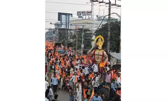 నెల్లూరు: హిందూ చైతన్య వేదిక నిర్వహించిన హనుమాన్ శోభా యాత్రలో వివిధ హిందూ సంస్థల నుండి వేలాది మంది కార్యకర్తలు పాల్గొనడంతో ఆదివారం నగరం రంగురంగుల మరియు ఆధ్యాత్మిక వాతావరణంతో నిండిపోయింది. ఈ ఊరేగింపు ఏసీ సుబ్బారెడ్డి స్టేడియం నుండి ప్రారంభమై కేవీఆర్ సెంటర్, మద్రాస్ బస్టాండ్, ట్రంక్ రోడ్, ఏసీ విగ్రహం, సుబేదార్ పేట, ఆత్మకూర్ బస్టాండ్ మరియు స్టోన్ హౌస్ పేట వంటి ప్రధాన నగరాల గుండా సాగి, నవాబ్పేట సమీపంలోని ఆర్ఎస్ఆర్ హై స్కూల్ వద్ద ముగిసింది.