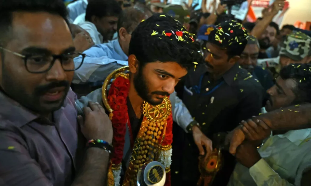 అత్యంత పిన్న వయస్కుడైన ప్రపంచ చెస్ ఛాంపియన్, భారతదేశం యొక్క ప్రతిభావంతుడు, 18 ఏళ్ల డి గుకేష్ సోమవారం అతన్ని స్వీకరించడానికి వందలాది మంది ఉత్సాహభరితమైన అభిమానులు మరియు అధికారులు వరుసలో ఉండటంతో కోలాహలంగా చెన్నై విమానాశ్రయంలో దిగారు. టీనేజ్ గ్రాండ్ మాస్టర్ గత వారం సింగపూర్లో చైనాకు చెందిన డింగ్ లిరెన్ను 7.5 - 6.5 తేడాతో ఓడించి కేవలం 18 ఏళ్లకే ప్రపంచ టైటిల్ను కైవసం చేసుకున్నాడు. ఘన స్వాగతంతో పొంగిపోయిన గుకేష్, మద్దతు ఇచ్చిన ప్రతి ఒక్కరికీ ధన్యవాదాలు తెలిపారు. "ఇది అద్భుతంగా ఉంది. మీ మద్దతు నాకు చాలా శక్తిని ఇచ్చింది. ప్రపంచ ఛాంపియన్షిప్ను గెలుచుకోవడం గొప్ప అనుభూతి" అని అతను చెప్పాడు.