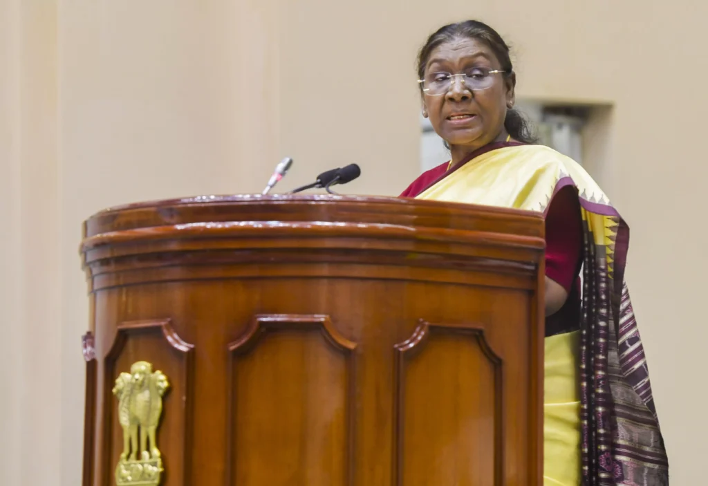 న్యూఢిల్లీ: ప్రెసిడెంట్ ద్రౌపది ముర్ము జాతీయ పంచాయితీ అవార్డుల కార్యక్రమంలో ప్రసంగించారు, బుధవారం, డిసెంబర్ 11, 2024.