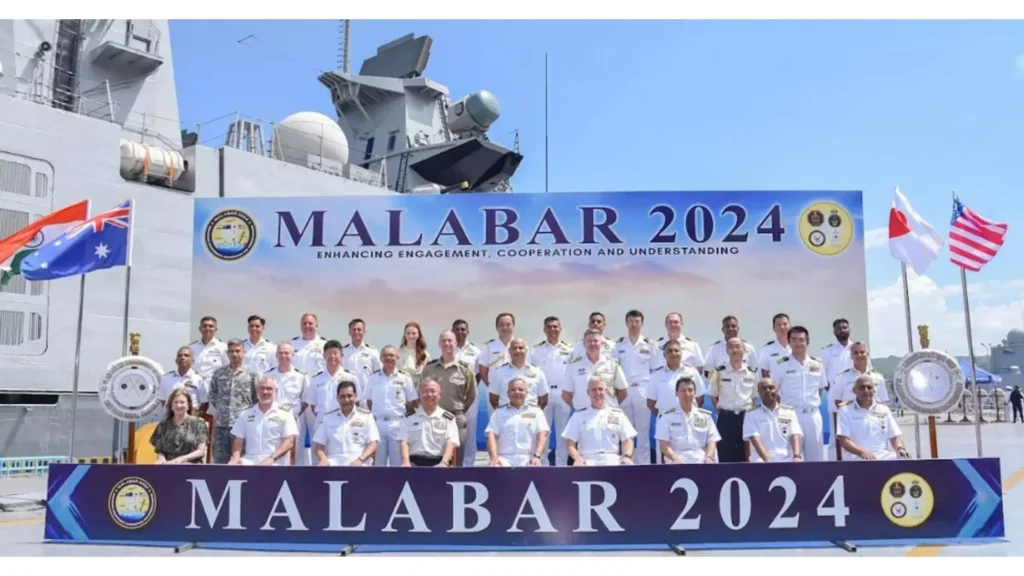 విశాఖపట్నం: మలబార్ 2024 సముద్ర దశ శుక్రవారం సాయంత్రం విశాఖపట్నంలో ముగిసింది. మలబార్ యొక్క ఈ ఎడిషన్ వారి సమగ్ర హెలికాప్టర్లు, సుదూర సముద్ర గస్తీ విమానం మరియు జలాంతర్గాములతో యుద్ధనౌకల భాగస్వామ్యాన్ని చూసింది. ఉపరితల, ఉప-ఉపరితల మరియు వాయుయుద్ధం యొక్క డొమైన్‌లలో యూనిట్లు సంక్లిష్టమైన మరియు అధునాతన వ్యాయామాలలో పాల్గొన్నాయి. ప్రధాన వ్యాయామాలలో ఉపరితల ఆయుధ కాల్పులు, యాంటీ-ఎయిర్ షూట్‌లు, వాయు రక్షణ వ్యాయామాలు, జలాంతర్గామి వ్యతిరేక వార్‌ఫేర్ వ్యాయామాలు, ఓడలో ప్రయాణించే హెలికాప్టర్‌ల విస్తృతమైన కార్యకలాపాలు, ట్యాంకర్ల నుండి ఇంధనం నింపడం మరియు సముద్ర నిషేధ కార్యకలాపాలతో సహా సీమాన్‌షిప్ పరిణామాలు ఉన్నాయి.