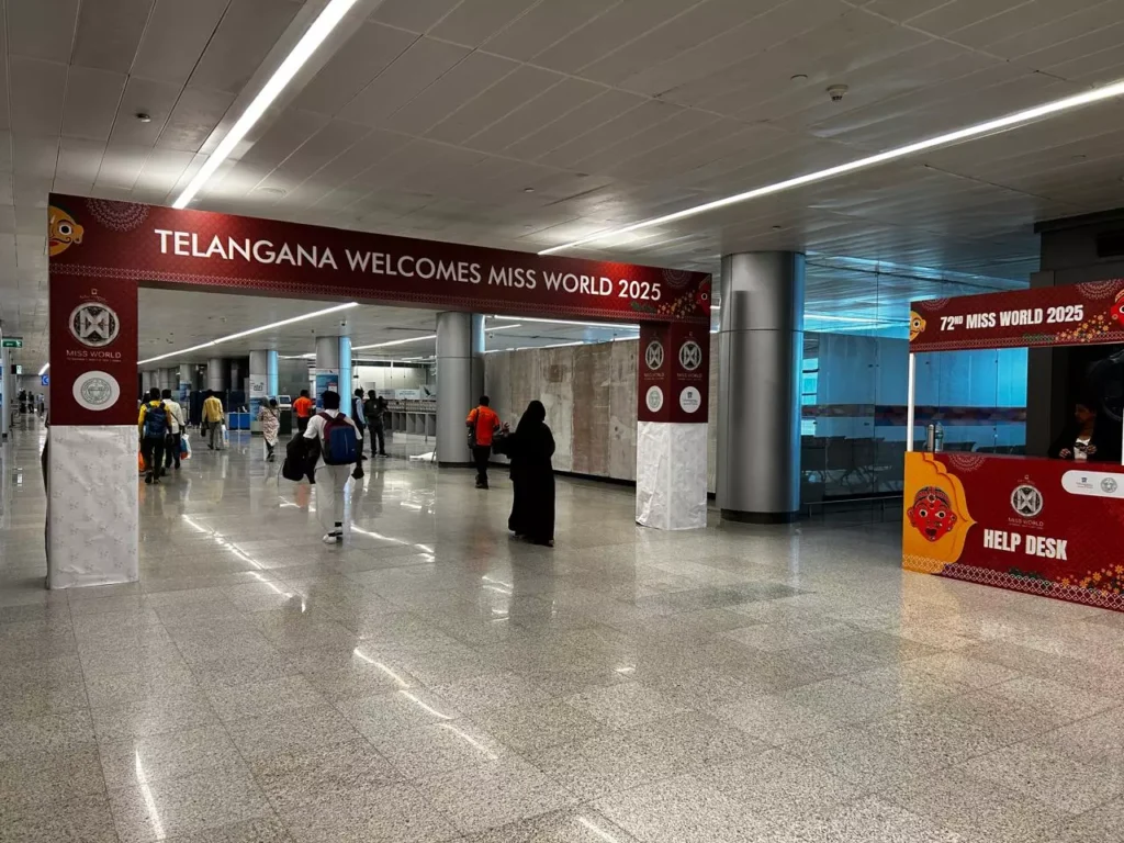 శంషాబాద్లోని రాజీవ్ గాంధీ అంతర్జాతీయ విమానాశ్రయం (RGIA)లో మిస్ వరల్డ్ 2025 పోటీదారులను పూర్తి సాంప్రదాయ గౌరవాలతో స్వాగతించడానికి పర్యాటక శాఖ ఏర్పాట్లు చేసింది.
