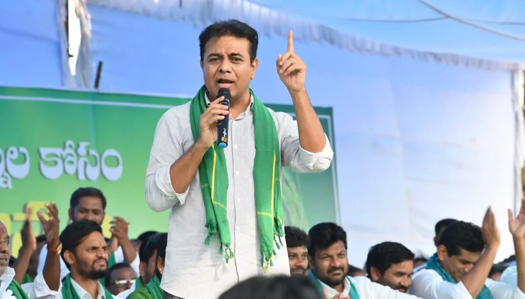 హైదరాబాద్: ఎన్నికల హామీలను నెరవేర్చడం లేదని ఆరోపిస్తూ అధికార కాంగ్రెస్, బీజేపీలపై దాడి చేసిన బీఆర్ఎస్ వర్కింగ్ ప్రెసిడెంట్ కెటి రామారావు హామీల అమలు కోసం తమ పార్టీ పోరాడుతుందని, రైతుల కోసం జైలుకు వెళ్లడానికైనా సిద్ధమని అన్నారు. .