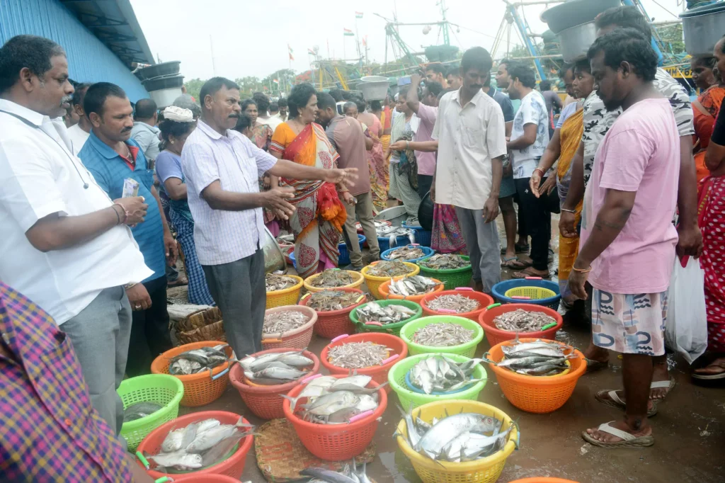 విశాఖపట్నం: జూన్ 14 అర్ధరాత్రి వరకు సుదీర్ఘ నిషేధం తర్వాత తిరిగి ప్రారంభమైన మొదటి ఆదివారం ఉదయం విశాఖపట్నం ఫిషింగ్ హార్బర్కు వేలాది మంది వచ్చారు. ఉదయం ప్రయాణించి సాయంత్రం తిరిగి వచ్చే దాదాపు 200 సింగిల్-డే మెకనైజ్డ్ బోట్లు దాదాపు 25 టన్నుల రొయ్యలు మరియు వివిధ రకాల చేపలను తీసుకువచ్చాయని మత్స్యశాఖ సహాయ డైరెక్టర్ కె. లక్ష్మణరావు తెలిపారు. “చేపలు పట్టడం నిషేధించబడిన కాలంలో ₹1,400కి అమ్ముడైన తొమ్మిది కిలోల బరువున్న మధ్య తరహా రొయ్యల బుట్ట కేవలం ₹800కే అమ్ముడైంది” అని ఆర్కె బీచ్కు చెందిన గృహిణి ఉషా ప్రకాష్ అన్నారు. ఆమె తన స్నేహితులతో కలిసి ఆదివారం ఉదయం ఫిషింగ్ హార్బర్ను సందర్శించి, ఒక వారం పాటు ఉండే మంచి పరిమాణంలో రొయ్యలు మరియు చేపలను తీసుకుంది.