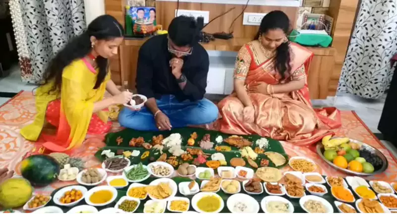 స్ప్రెడ్లో శాఖాహారం మరియు మాంసాహార వంటకాలు ఉన్నాయి, వాటితో పాటు పులిహోర, బగారా మరియు వివిధ ఆహార పదార్థాలు, అతనికి తెలంగాణ వంటకాల యొక్క నిజమైన రుచిని అందిస్తాయి. క్రాంతి మరియు కల్పనల పెద్ద కుమార్తె కాకినాడకు చెందిన మల్లికార్జున్ను నాలుగు నెలల క్రితం వివాహం చేసుకున్నారు, మరియు అతని మొదటి సంక్రాంతిని వారితో జరుపుకోవడానికి ఈ విందు ఒక ప్రత్యేక సంజ్ఞ.