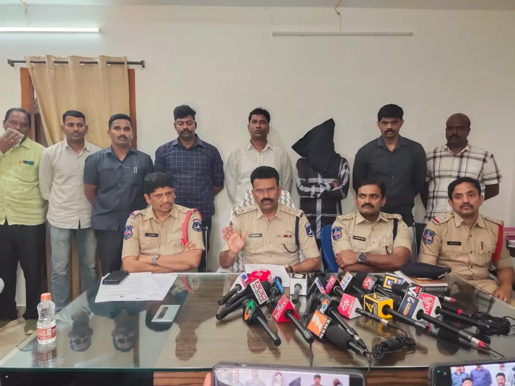 మహిళ హత్య కేసులో అరెస్టయిన నిందితులను శనివారం మీడియా ముందు హాజరుపరిచిన మేడ్చల్ జోన్ డిప్యూటీ కమిషనర్ ఆఫ్ పోలీస్ ఎన్ కోటిరెడ్డి.
