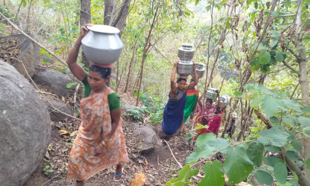 విశాఖపట్నం: ASR జిల్లాలోని మారుమూల కొండప్రాంత గిరిజన గ్రామమైన జాజుల బండలో, ముఖ్యంగా దుర్బల గిరిజన సమూహం (PVTG) కొండు కమ్యూనిటీకి చెందిన మహిళలు స్వచ్ఛమైన నీటిని తీసుకురావడానికి ప్రతిరోజూ దాదాపు రెండు కిలోమీటర్లు నడవవలసి వస్తుంది, ఇది తీవ్రమైన మరియు కొనసాగుతున్న నీటి సంక్షోభాన్ని బహిర్గతం చేస్తుంది. ప్రభుత్వ చొరవతో సంవత్సరాల క్రితం వ్యక్తిగత ఇళ్లలో కుళాయిలు ఏర్పాటు చేసినప్పటికీ, సహాయక మౌలిక సదుపాయాల లేకపోవడం వల్ల ఈ ప్రాజెక్ట్ పనిచేయడం లేదు.